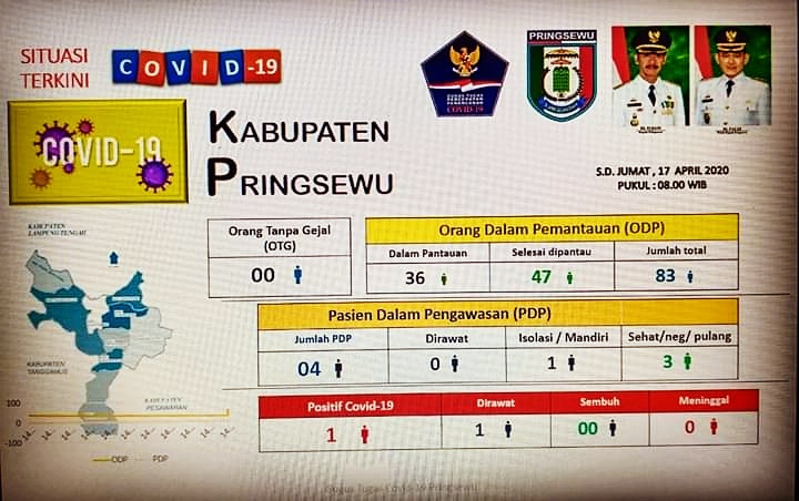 Gugus Tugas Percepatan Penanganan Covid-19 Kabupaten Pringsewu pada tanggal 16 April 2020 telah menerima laporan dari Dinas Kesehatan Provinsi Lampung terkait hal tersebut.