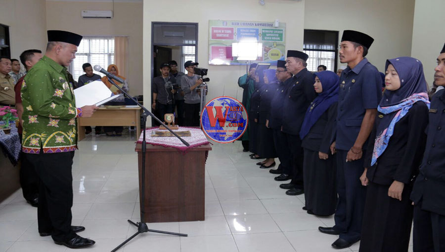 PRINGSEWU-(PeNa), Guna meningkatkan pengawasan jajaranya, sembilan pejabat fungsional inspektorat di lantik Wakil Bupati Pringsewu Fauzi di Aula Kantor Inspektorat Kabupaten setempat, Jumat (9/3).