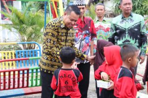 “Kita jaga dan bimbing anak-anak agar tidak terpengaruh hal-hal negatif dari smart phone, dengan di berikannya alat bermain ini, anak-anak dapat saling berinteraksi satu sama lainnya, ” kata Wakil Bupati Eriawan saat menyerahkan bantuan alat bermain anak di Desa Margo Mulyo Kecamatan Tegineneng, Jumat (30/08/2019).