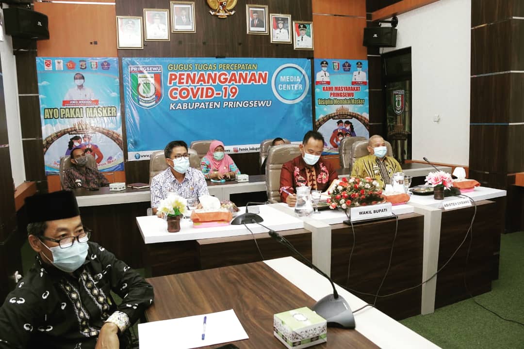 PRINGSEWU-(PeNa), Wakil Bupati Fauzi mengikuti kegiatan Rakor Nasional Tim Percepatan Akses Keuangan Daerah sekaligus Arahan Presiden RI secara virtual di Ruang Rapat Bupati Pringsewu, Kamis (10/12/20).