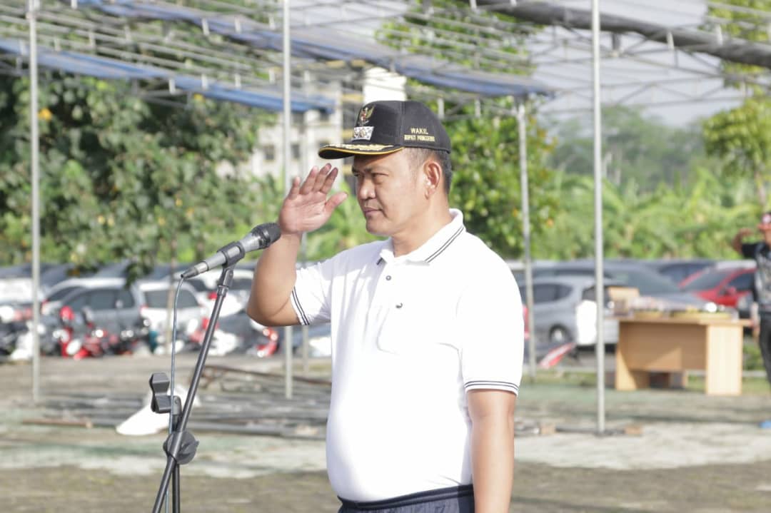 PRINGSEWU-(PeNa), Selesai apel, Wakil Bupati Pringsewu Fauzi mengajak seluruh jajaran dan masyarakat untuk bersama-sama mensukseskan peringatan Hari Ulang Tahun (HUT) Kabupaten Pringsewu Ke-11 dan pelaksanaan Musabaqoh Tilawatil Qur’an (MTQ) Provinsi Lampung ke-48 Tahun 2020 pada April mendatang, Jum’at (14/02/2020).