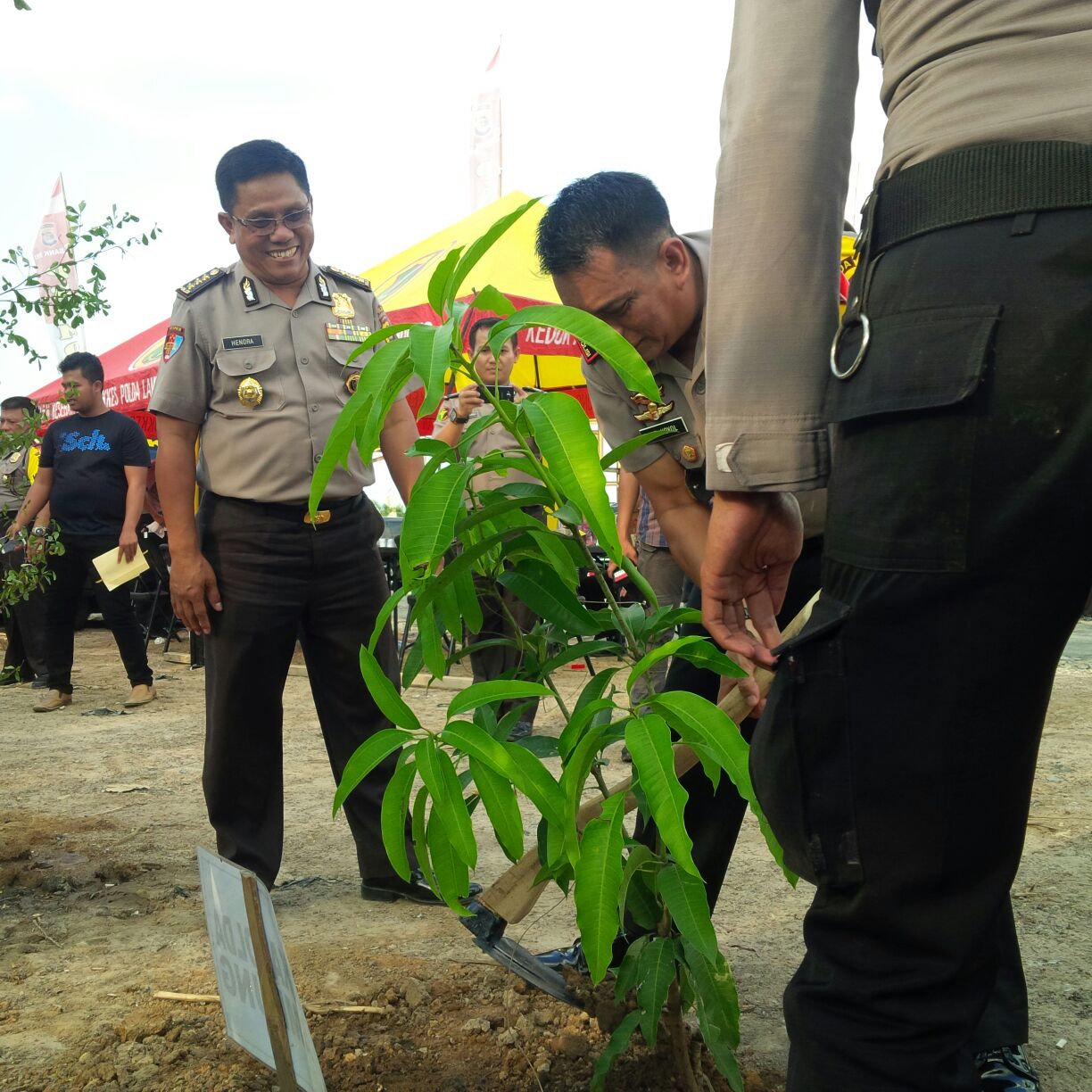 “Jangan Kabid Propam yang bantu saya, takut tanaman ini mati. Kabid Dokes (Kombes Pol. dr Andri Bandarsyah) saja,” canda Waka Polda, seraya menanam pohon ke lubang yang telah disiapkan lalu menimbunnya dengan tanah menggunakan cangkul.