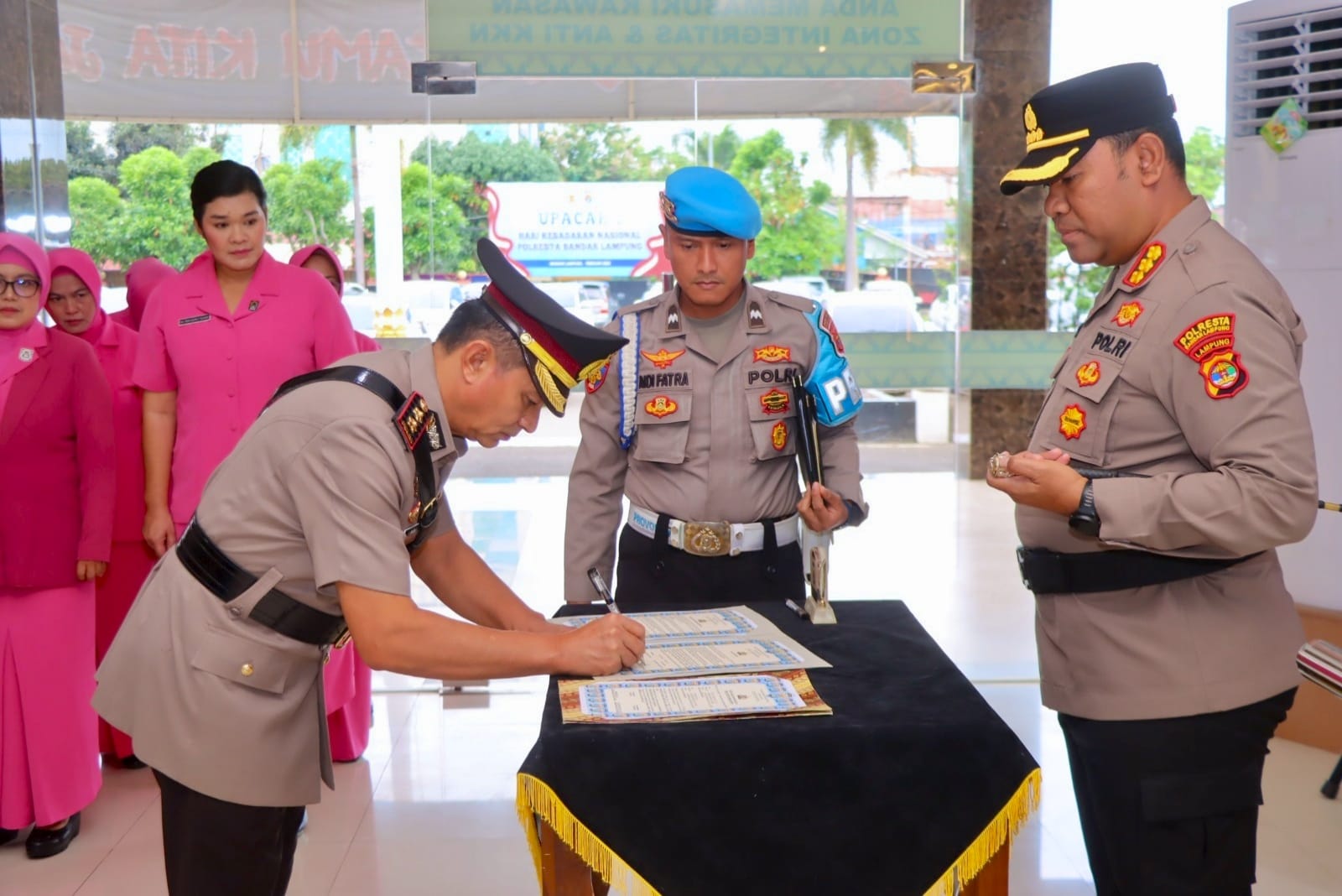 Pelantikan dipimpin Kapolresta Bandar Lampung Kombes Pol Alfret Jacob Tilukay. Prosesi berjalan singkat namun sarat makna, menandai babak baru kepemimpinan di tubuh Polresta.