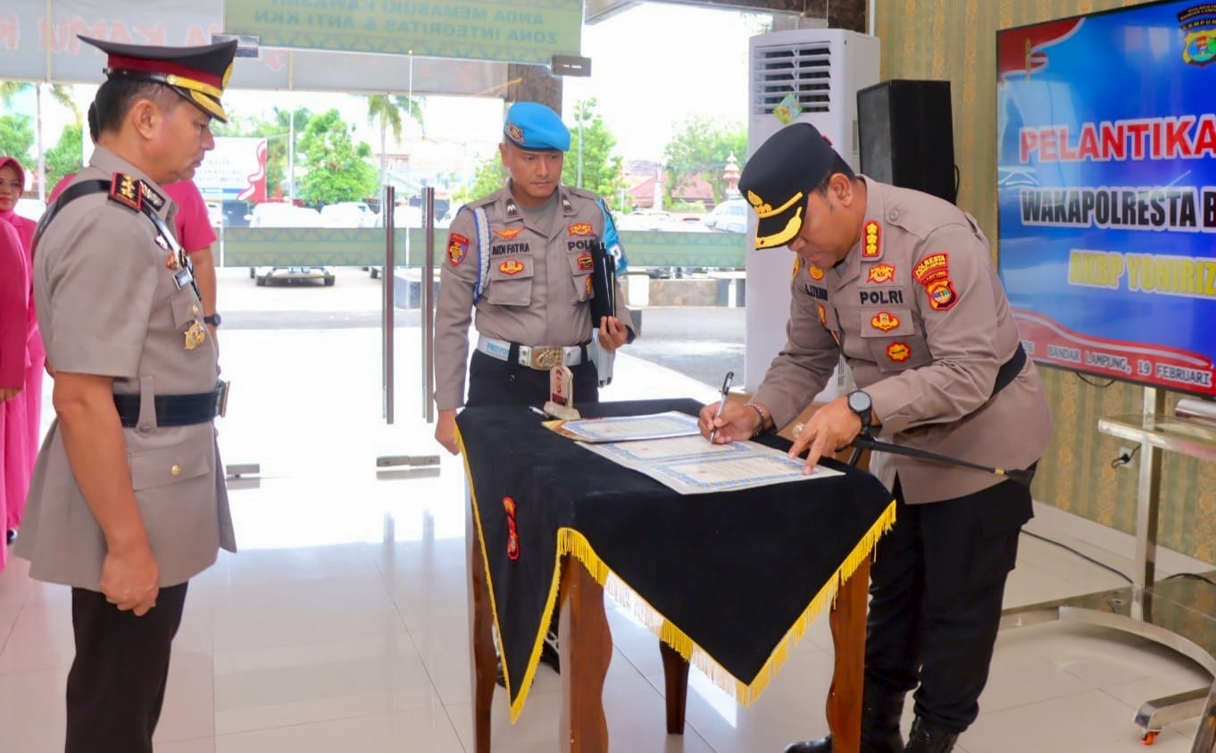 BANDARLAMPUNG – (PeNa), Suasana Koridor Mapolresta Bandar Lampung, Kamis (19/2/2026), terasa berbeda. AKBP Yonirizal Khova resmi menyandang jabatan Wakapolresta Bandar Lampung, mendampingi Kapolresta dalam mengawal dinamika kota.