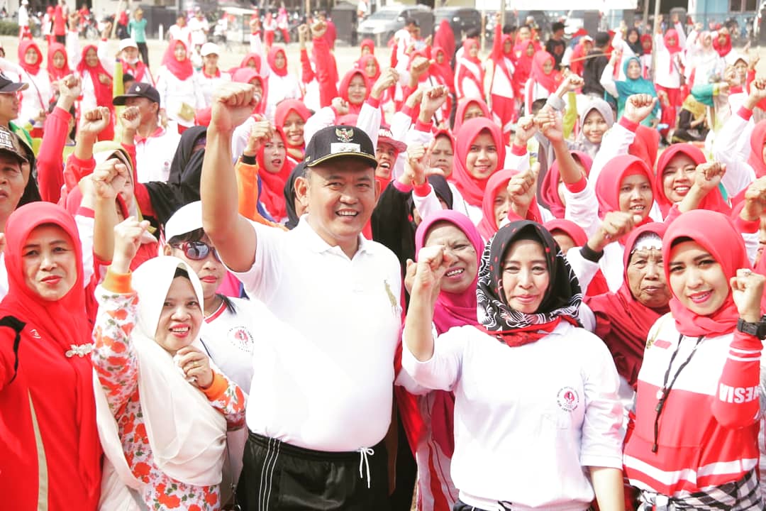 PESAWARAN-(PeNa), Wabup Pringsewu Fauzi didampingi Wakil Ketua TP-PKK Pringsewu Rita Irviani Fauzi mengkampanyekan Gerakan Masyarakat Hidup Sehat (Germas) di Lapangan Gajah Mada Kecamatan Adiluwih, Sabtu (28/09/2019).