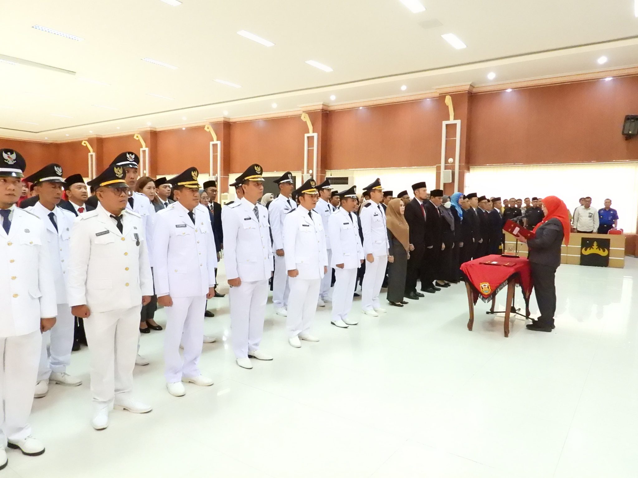 Walikota Bandarlampung Eva Dwiana melantik dadakan 109 pejabat eselon III dan IV di Gedung Semergou. Selasa (19/3/2024).