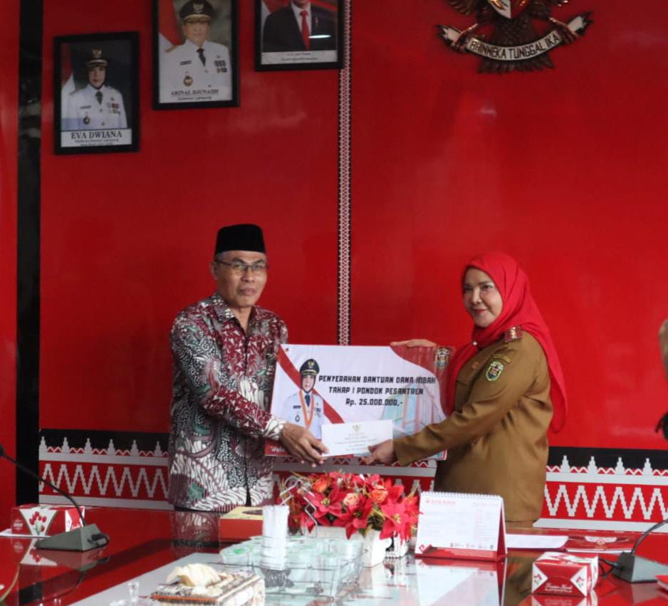Pemerintah kota Bandarlampung melalui walikota Bandarlampung Eva Dwiana memberikan bantuan operasional ke 73 Pesantren yang ada di kota Bandarlampung, Senin (5/2/2024).