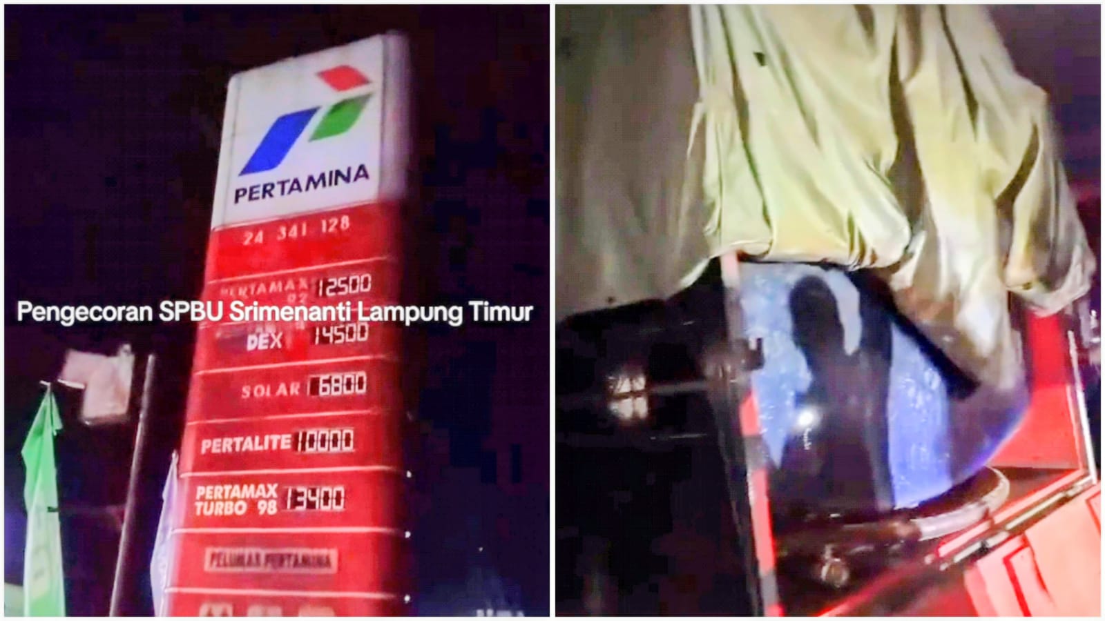 “Pengecoran di POM Bensin Sribawono, kacau, pengevakuasian ditutup, bahaya. Mobil BE 8542 AD ini, siapa pemiliknya? Jangan sampai dimanfaatkan orang lain,” kata perekam.