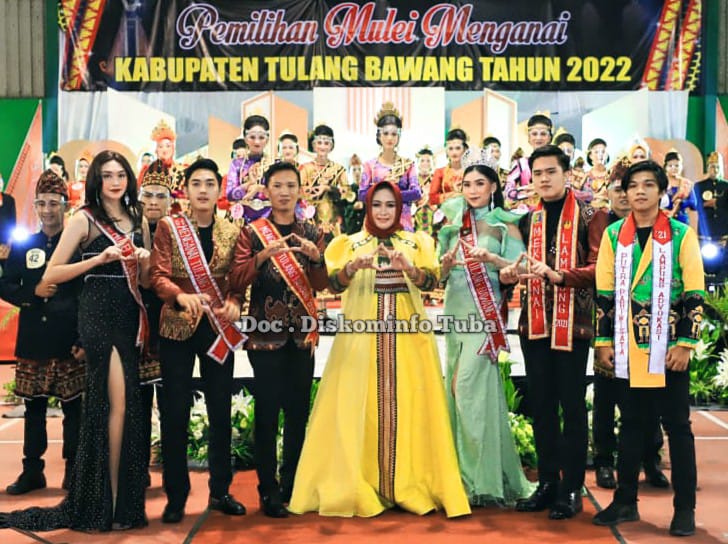 Bupati Tulang Bawang Dr. Hj Winarti, S.E., M.H membuka secara resmi acara Malam Grand Final Pemilihan Mulei Menganai Kabupaten Tulang Bawang Tahun 2022. Ajang ini digelar di lapangan tenis indoor, Menggala Tulang Bawang, Jumat (18/3).